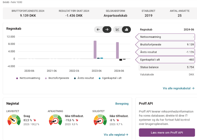 På www.proff.dk, kan du slå en virksomhed op og på ganske få parametre bedømme virksomheden selv.